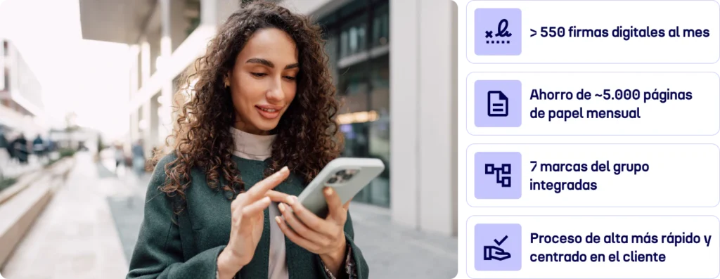 “Buscábamos una solución capaz de integrarse de forma nativa en nuestros sistemas y ofrecer una experiencia de firma sencilla y segura al cliente final. Con Signaturit conseguimos un proceso ágil, con total trazabilidad y garantías legales, que además se adapta a cualquier canal y dispositivo. La colaboración técnica fue fluida desde el primer momento, lo que nos permitió acelerar la adopción interna y garantizar una experiencia digital consistente en todas nuestras marcas.”
