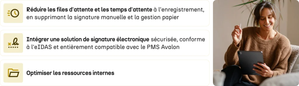 « La mise en place de la signature électronique nous a permis d’accélérer considérablement l’enregistrement, de réduire les files d’attente et d’améliorer la satisfaction des clients dès leur arrivée. »