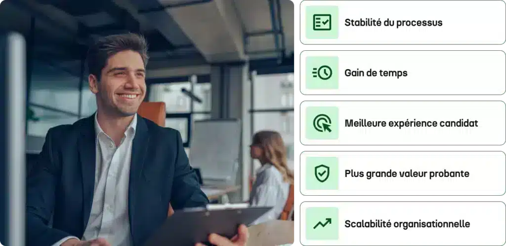 « L’impact se ressent au quotidien : moins de déplacements, onboarding plus rapide et équipes comme candidats plus satisfaits, avec la tranquillité d’esprit de respecter en permanence les standards de sécurité et de conformité. »
