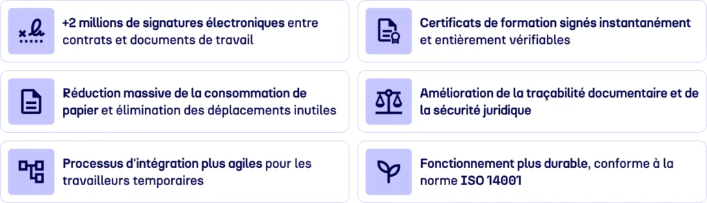 Depuis sa mise en œuvre, la numérisation de la signature a eu un impact direct sur l’efficacité, la durabilité et l’expérience des travailleurs.