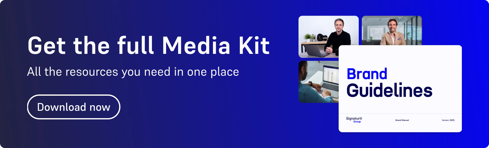 Discover our Media kit and branding assets to help you showcase the Signaturit Group brand alongside your own. This kit includes our logos and provides valuable guidelines for the use of the Signaturit Group brand.