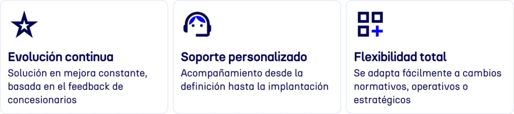 The system is designed to adapt to the dealership’s daily operations, enabling different teams to work within a shared and structured environment. Through a guided workflow, the solution indicates the steps to follow in each file, automates repetitive tasks, and reduces the likelihood of errors.